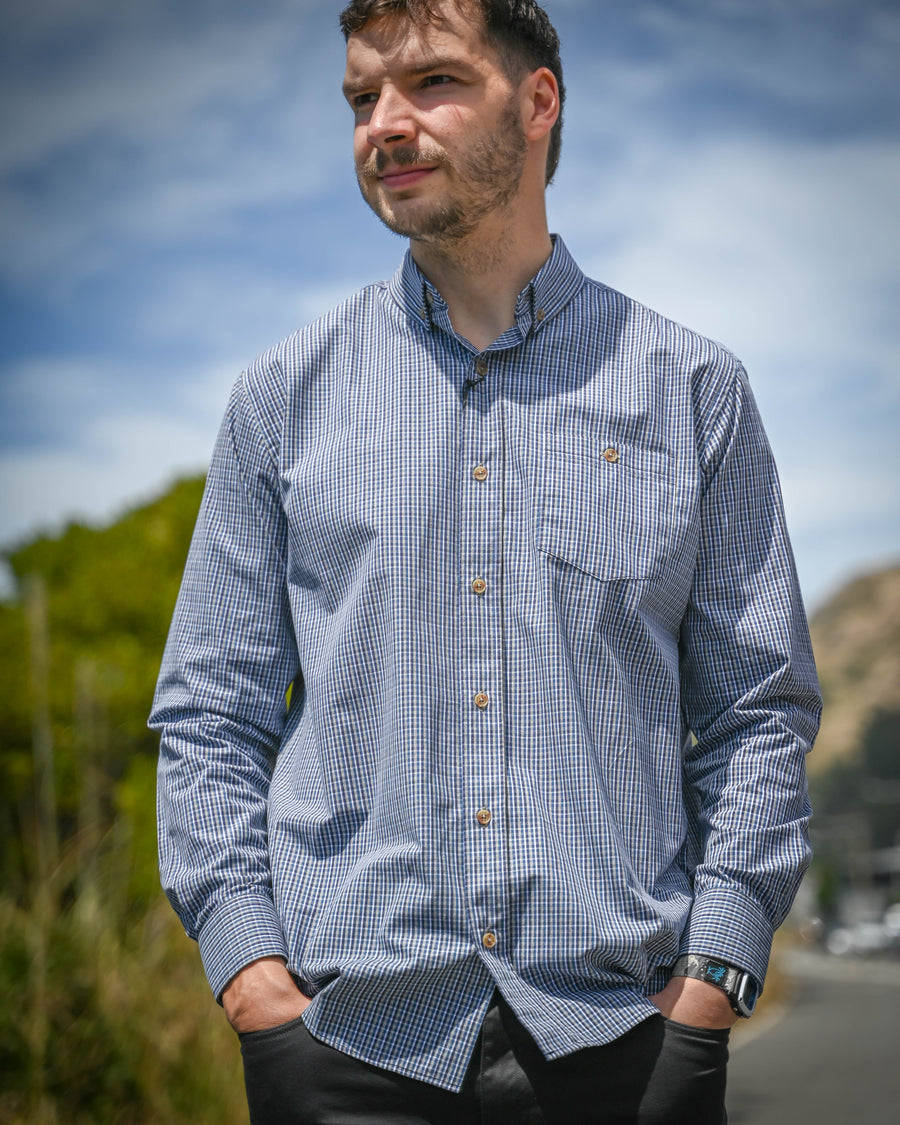 Lifestyle | Long-sleeve Shirt | 100% Cotton | Blue-Grey Check