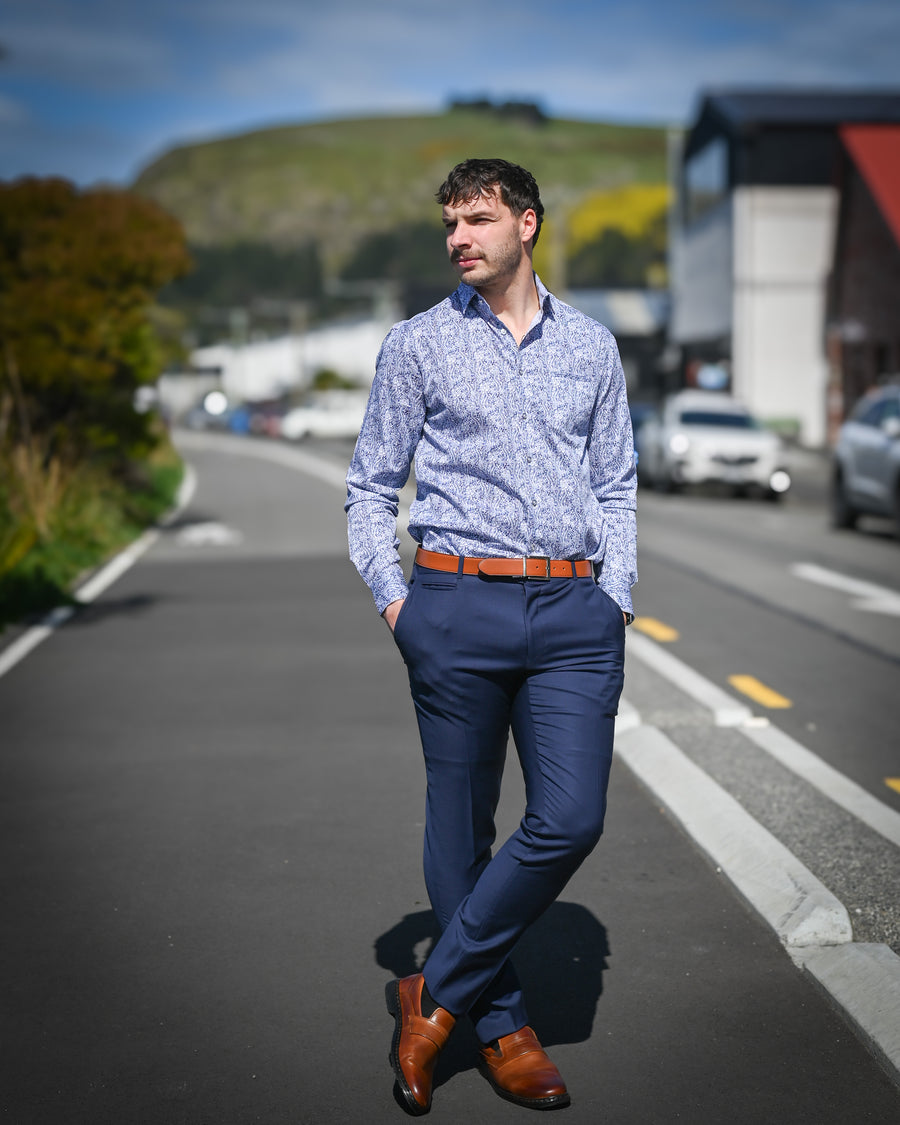 Berlin | Long-sleeve Shirt | 100% Cotton | Blue Paisley