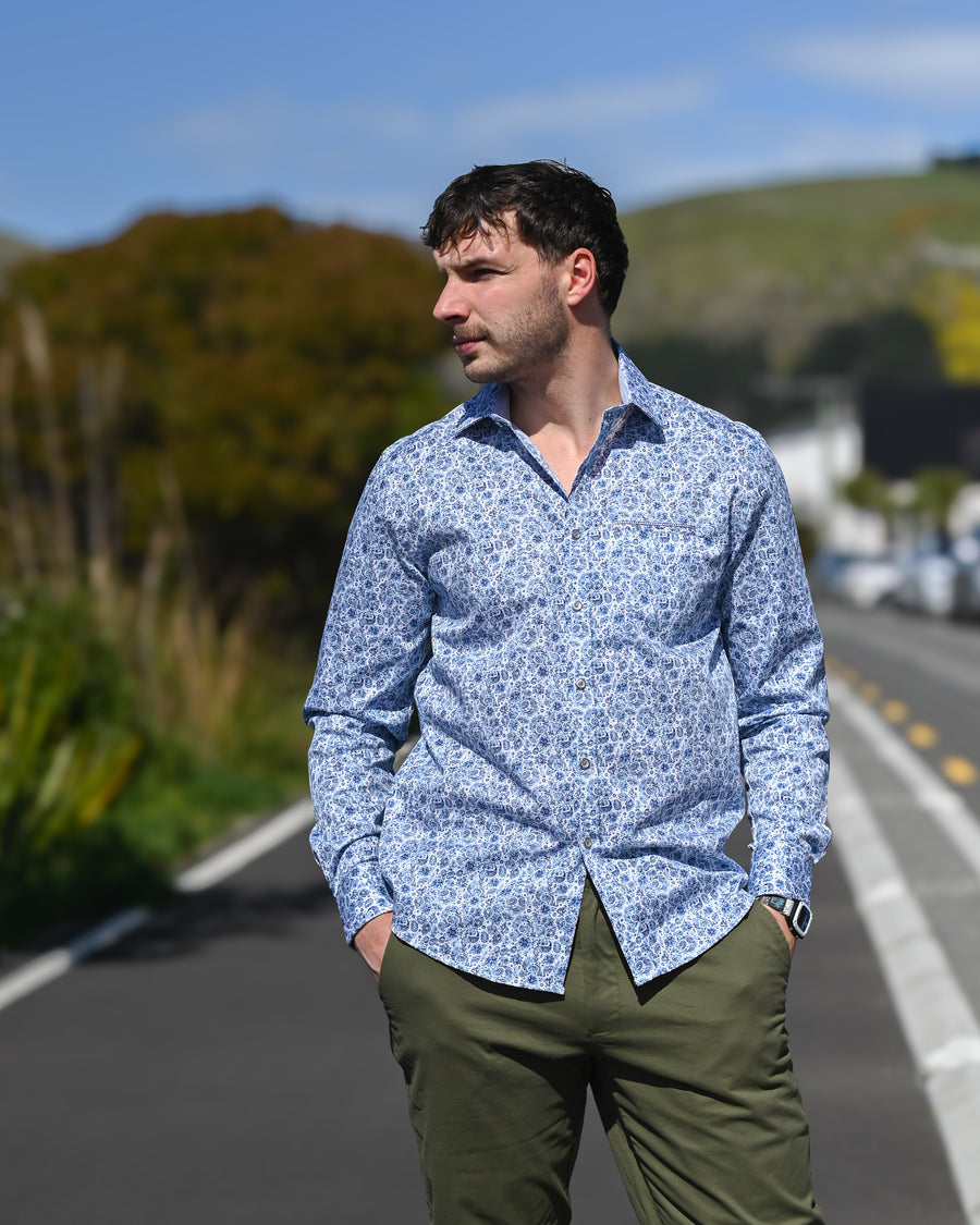 Berlin | Long-sleeve Shirt | 100% Cotton | Blue Paisley Small Motif