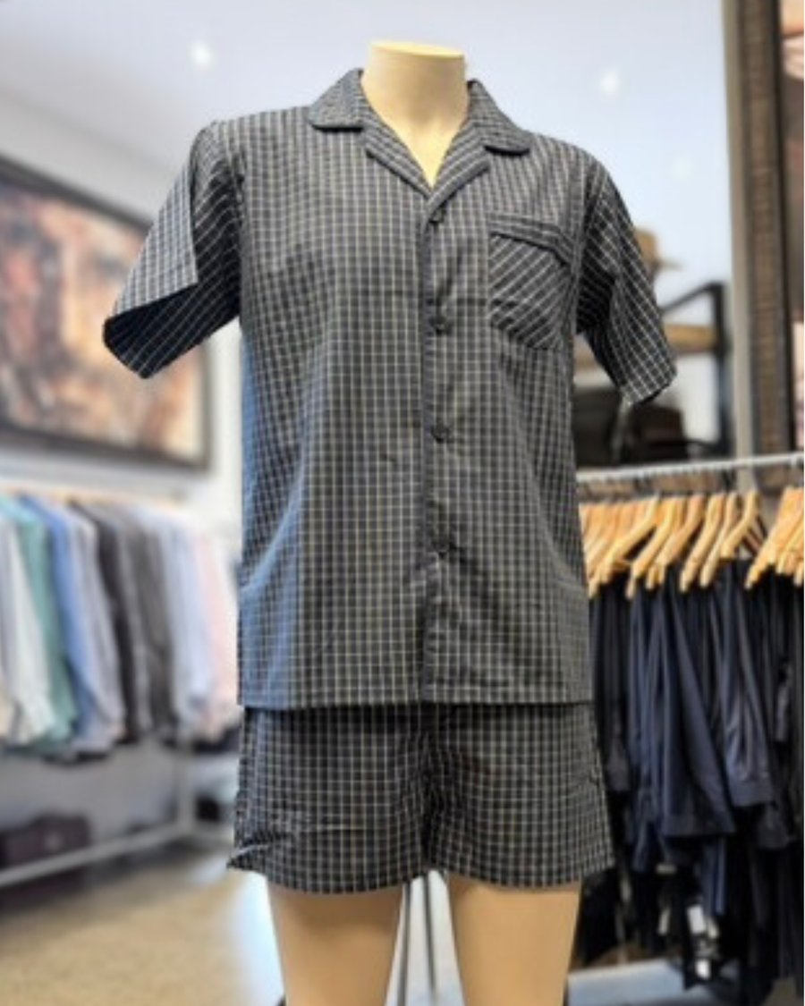 Lichfield | Short Pajamas | 100% Summer-weight Cotton | Black & White Check