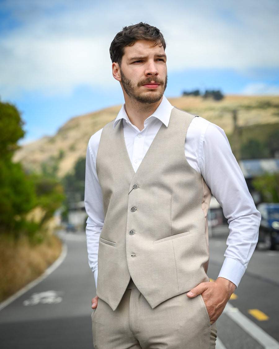 Savile Row | Linen-Wool-mix Suit Waistcoat | Asher | Sand