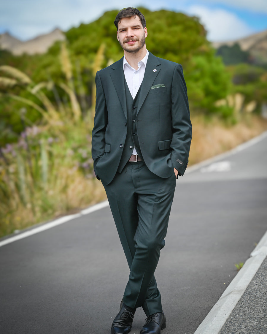 These Savile Row Abram D2 suit trousers are made from super-fine merino wool fibres in a deep Forest Green. Worn with a matching jacket you will cut a dash at a wedding or a corporate event and the lightweight travel finish of these trousers makes them an excellent choice for the summer season.
